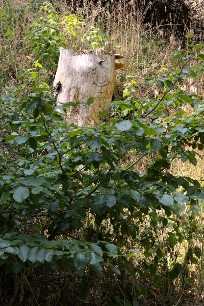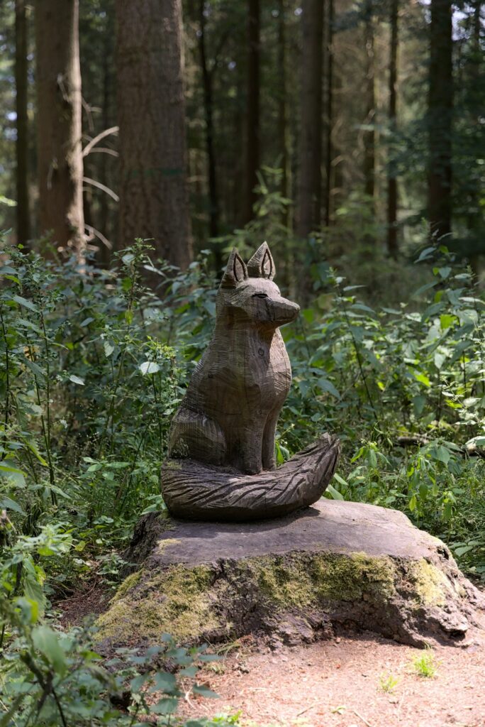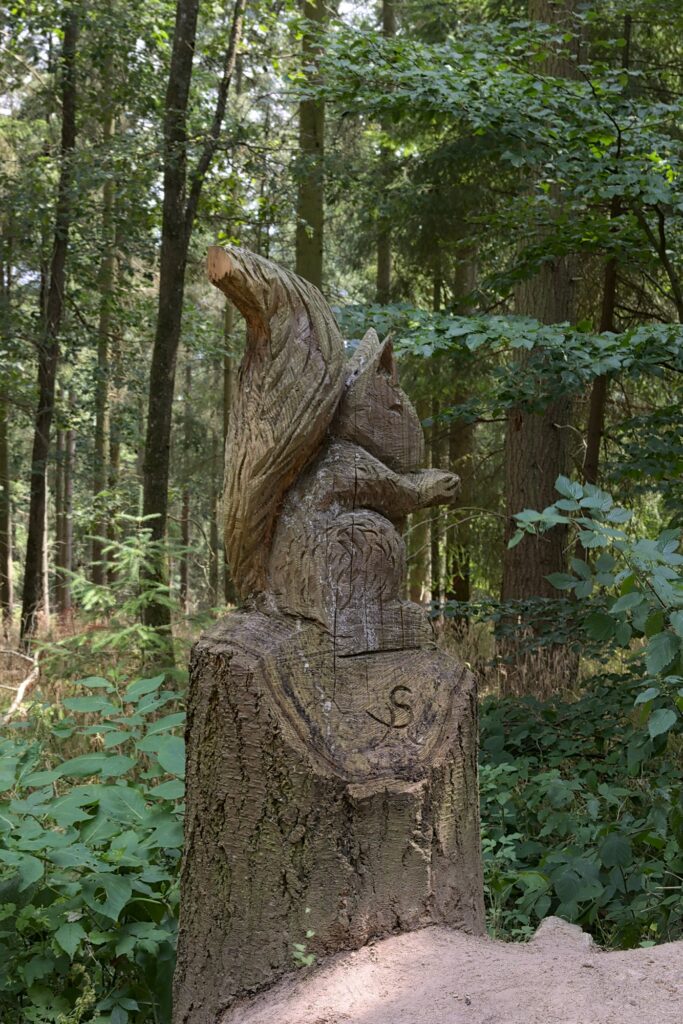 Ensuite, retour au parking pour manger / prendre des forces, et hop, on est partis pour le site des 3 châteaux. Sur la route, quelques vues sympas, et quelques troncs d’arbres décorés de manière sympathique :