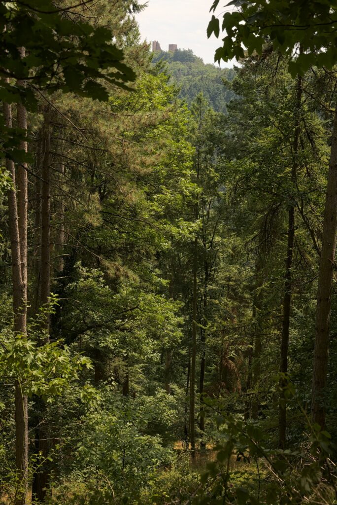 La marche pour aller du parking du Hohlandsbourg vers le site des 3 châteaux est assez sympathique. Il y a des sentiers dans la forêt, et on marche très peu au niveau de la route. Il y a plusieurs choses à voir en cours de route, mais nous n’avions pas le temps de tout faire. Donc nous sommes restés sur notre objectif de voir le site des 3 châteaux. Et voilà le site en question :
