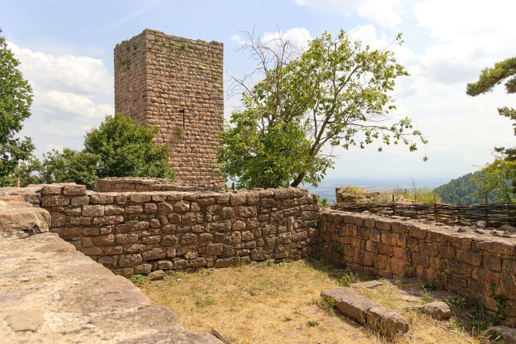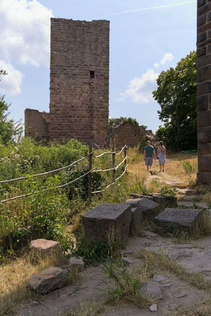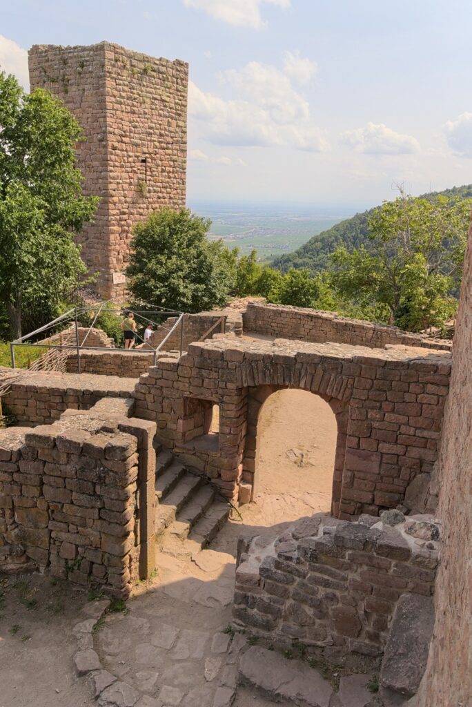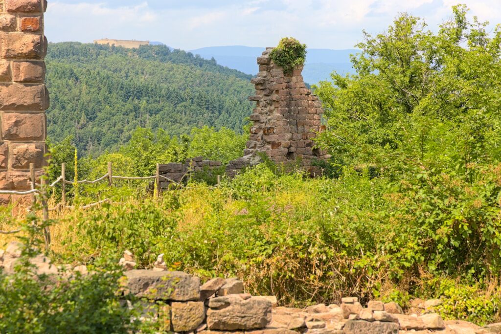 En vrai, seule l’une des tours est en bon état. Le reste, ce sont surtout des ruines. Mais ça reste sympa à voir, et on a encore une fois une belle vue sur la plaine d’Alsace et une partie des Vosges (en fonction de là où on regarde). D’ici, on voit le Hohlandsbourg où nous étions précédemment :