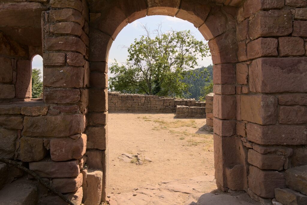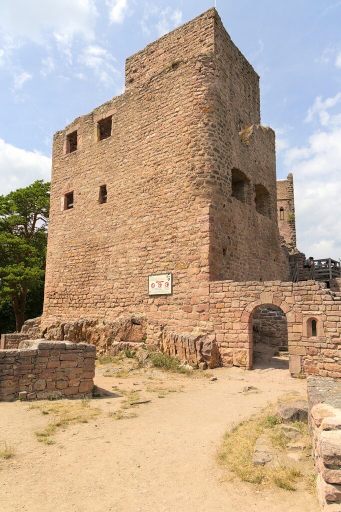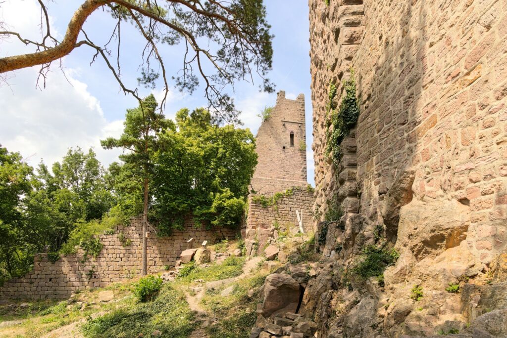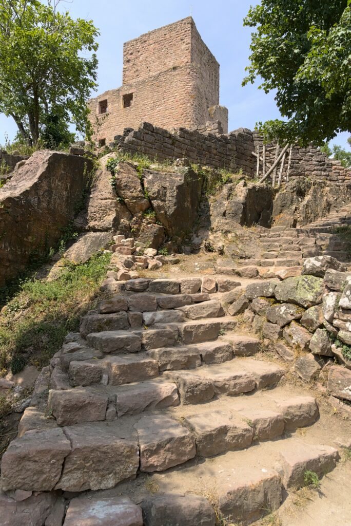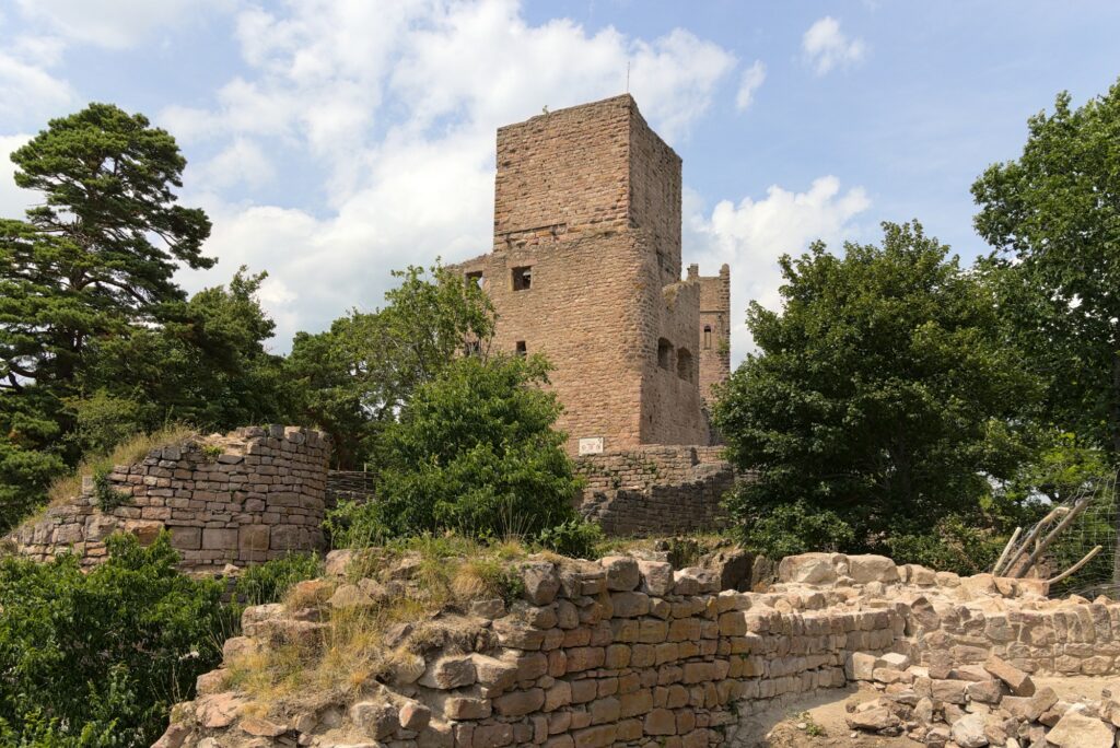En vrai, seule l’une des tours est en bon état. Le reste, ce sont surtout des ruines. Mais ça reste sympa à voir, et on a encore une fois une belle vue sur la plaine d’Alsace et une partie des Vosges (en fonction de là où on regarde). D’ici, on voit le Hohlandsbourg où nous étions précédemment :